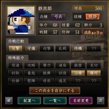 体力 技量 戦闘 防御 脚力 膂力 連発 討取 奮起 鼓舞 鉄見